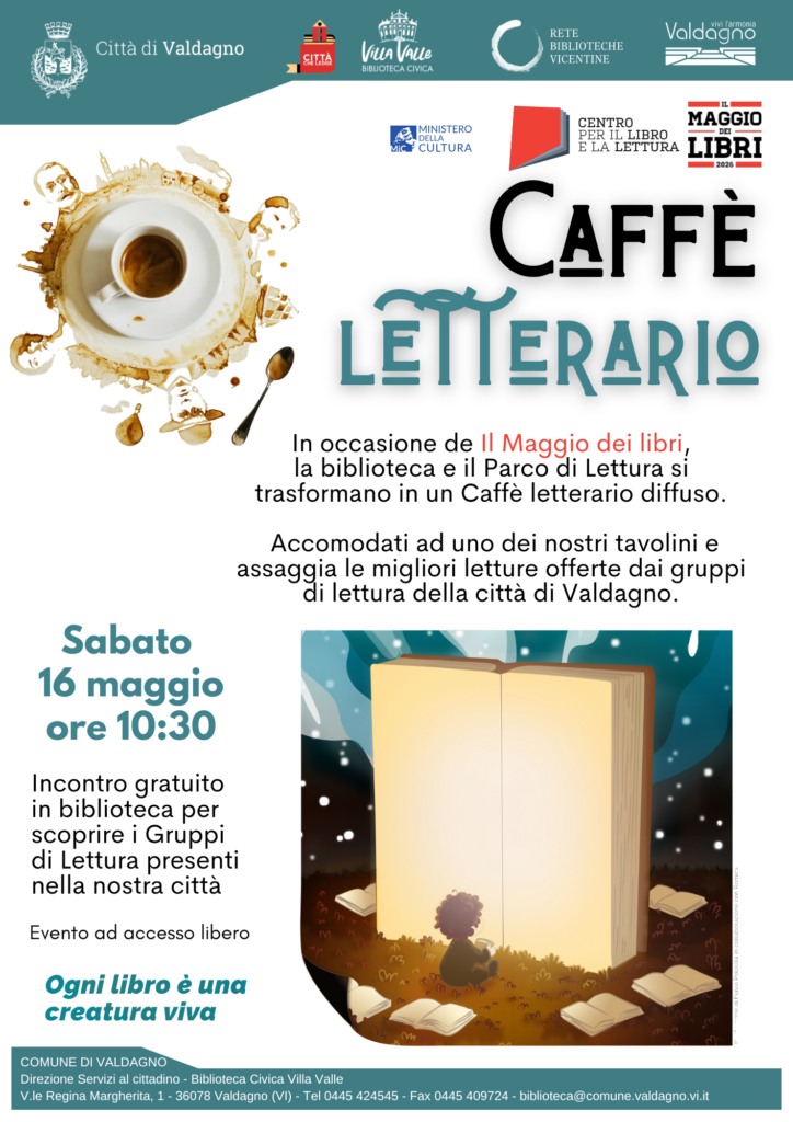 Sabato 16 maggio alle 10:30 ti aspettiamo in biblioteca civica Villa Valle per il nostro Caffè letterario.