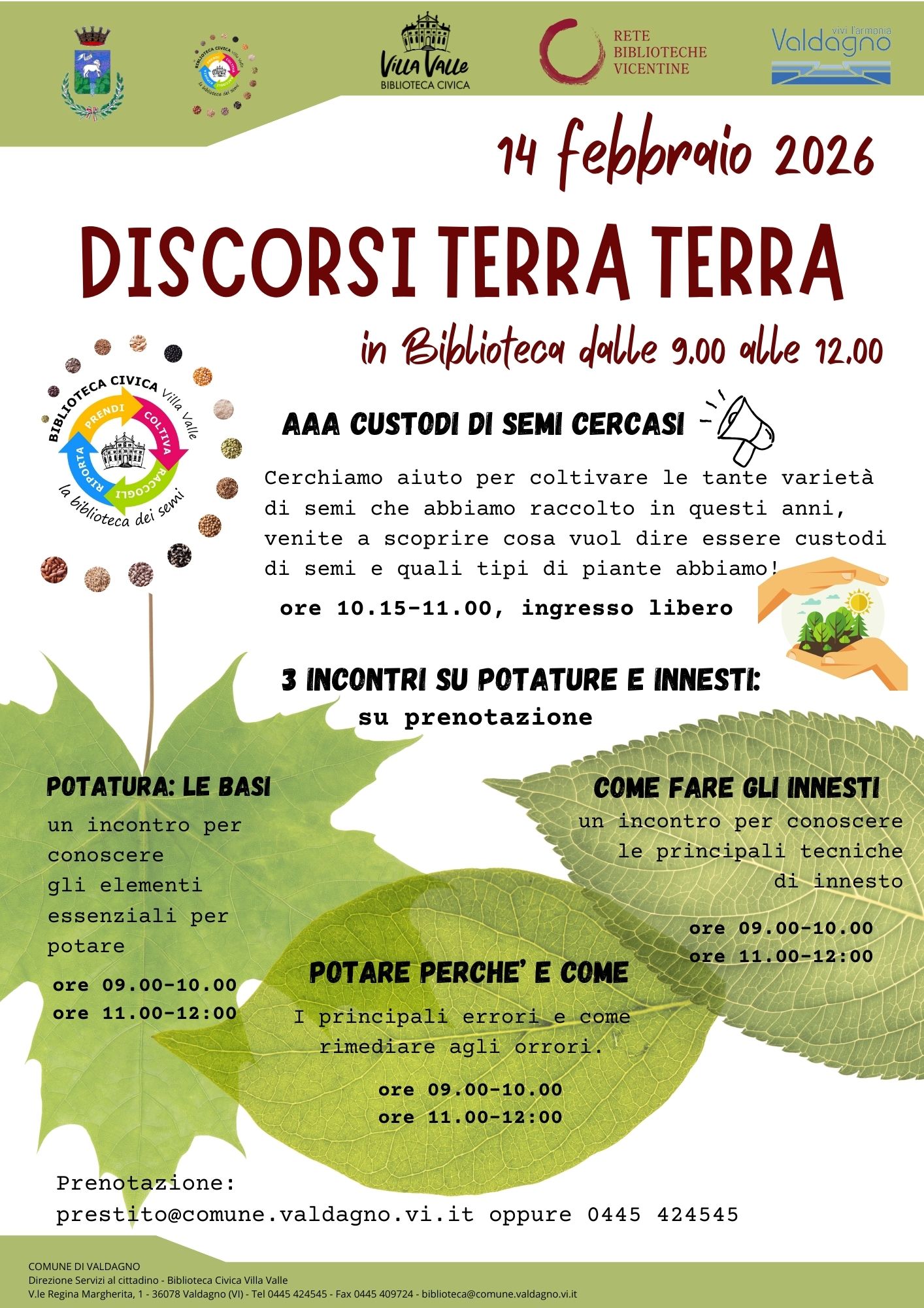 Per prenotare: prestito@comune.valdagno.vi.it oppure 0445 424545.