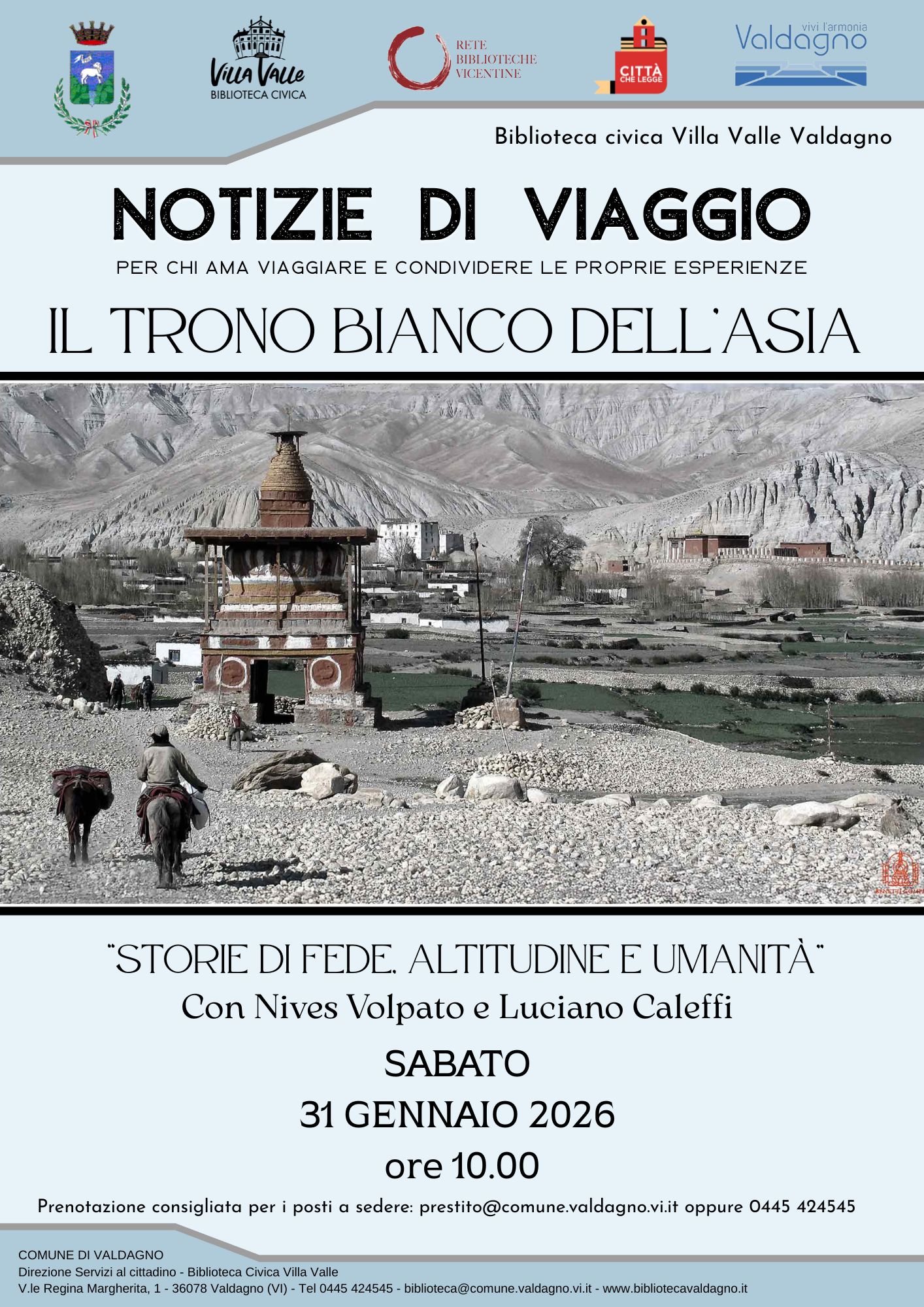 La prenotazione per i posti a sedere è sempre consigliata: prestito@comune.valdagno.vi.it ↗ oppure 0445 424545